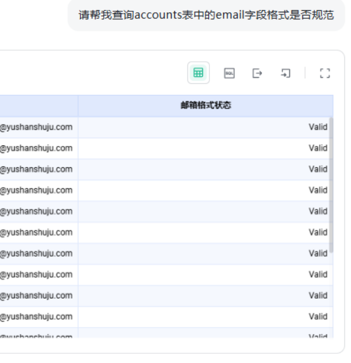 业务场景应用:在羽山数据的人力资源客户数据治理项目中,SQLBot的查询功能发挥了显著作用。HR团队利用SQLBot快速审计员工账户数据,核查员工ID的总量与唯一性,识别重复、缺失及格式异常记录,确保基础人事数据的完整性与规范性。
