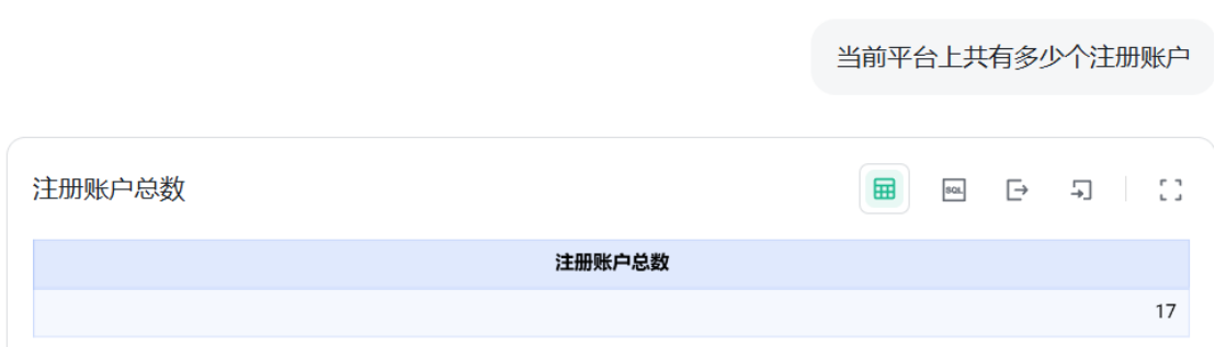 自然语言转 SQL:业务或技术人员可以直接输入“我的客户表中一共有多少个账户”这样的自然语言问题,SQLBot 会自动生成可执行SQL语句。